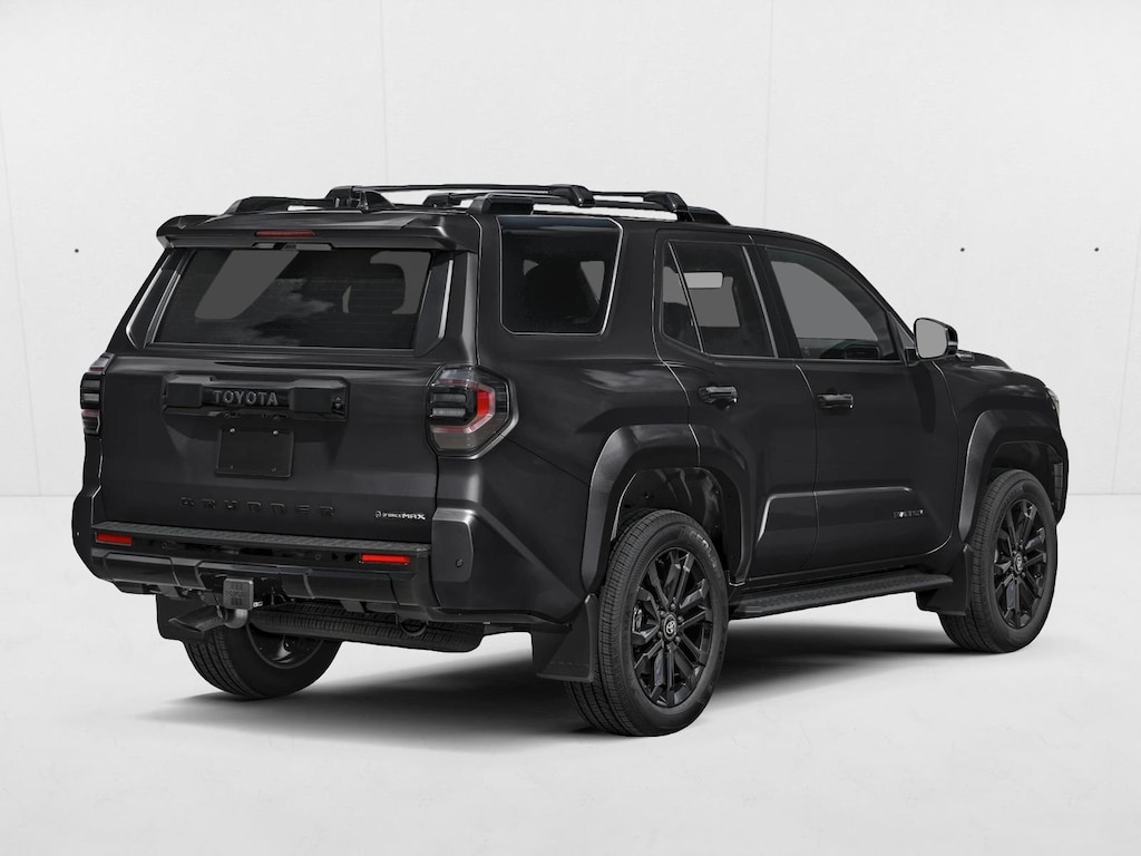 • Dark-chrome tri-bar grille; gloss-black mirror caps and door handles; color-keyed overfenders and rear spoiler; gloss-black "platinum" and "4runner" badges.